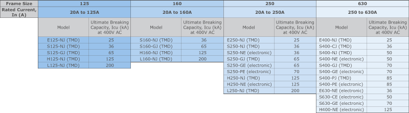 gabarytach:250A i 630A. |